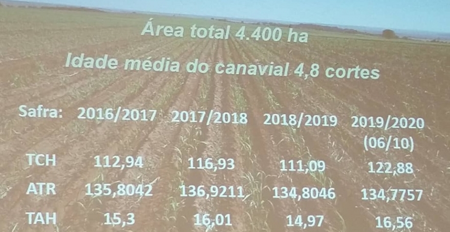 Na safra atual (até o dia 06/10), a média de TAH da propriedade é 16,56, com um ATR de 134,77 e um TCH de 122,88.