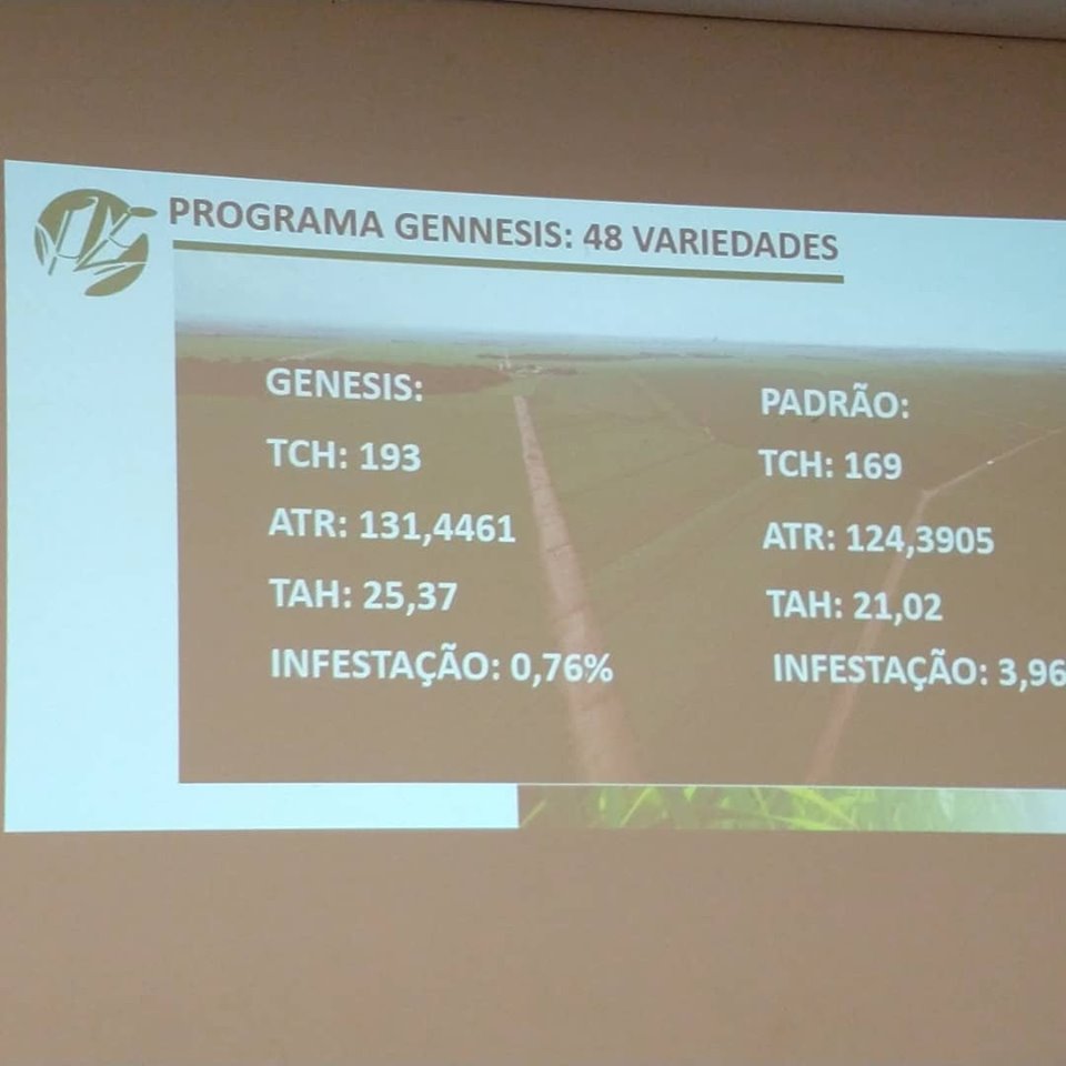 "Na área tratada com o programa Gennesis, obtive um TCH de 193; um ATR de 131,44; um TAH de 25,37 e uma infestação de broca de 0,76. Na área com tratamento padrão, os números foram: TCH de 169; ATR de 124; TAH de 21,02 e uma infestação de 3,96."