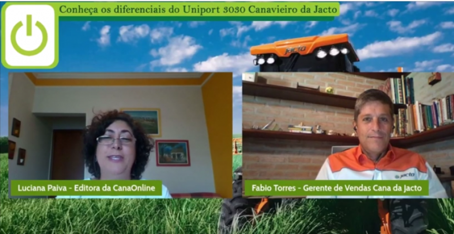 Fábio Torres, gerente Vendas Cana da Jacto, em entrevista com Luciana Paiva, editora da CanaOnline, apresenta detalhes do Uniport 3030 Canavieiro