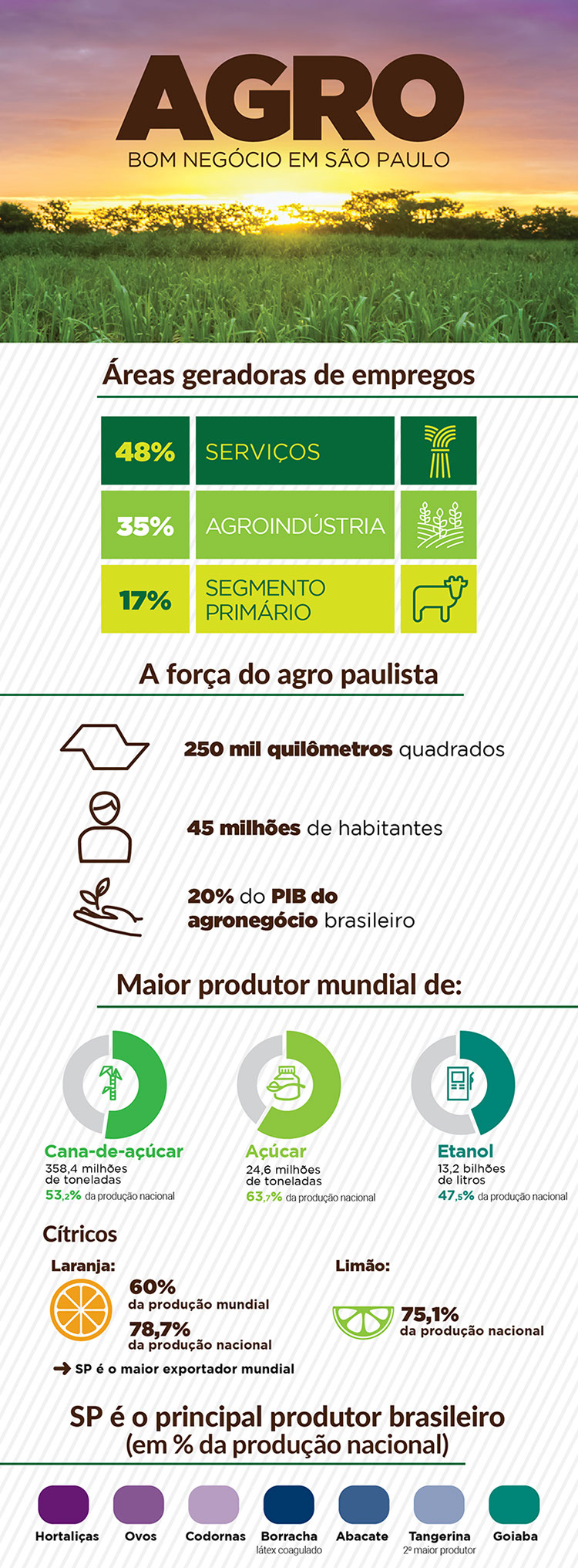 Setor responsável por gerar emprego e riqueza é também líder na produção de itens importantes, como cana-de-açúcar; veja números e cifras