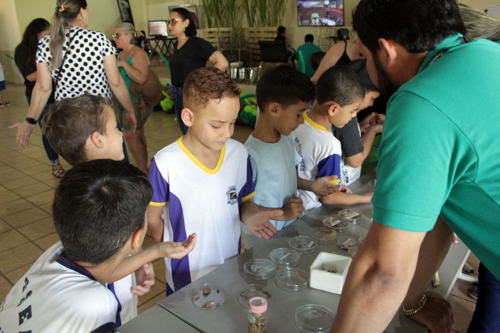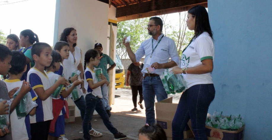 Como lembrança desta incrível jornada foram entregues copos, sementes de árvores ipê roxo para as crianças plantarem e a famosa garapa de cana de açúcar.”
