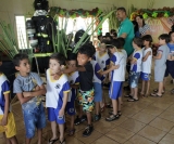 Brigada de Incêndio onde as crianças receberam orientações essenciais sobre prevenção de incêndios e procedimentos de emergência. As crianças foram educadas sobre os perigos de queimadas, promovendo um senso de responsabilidade e proteção ambiental.