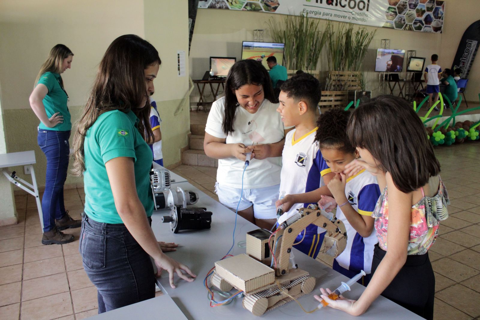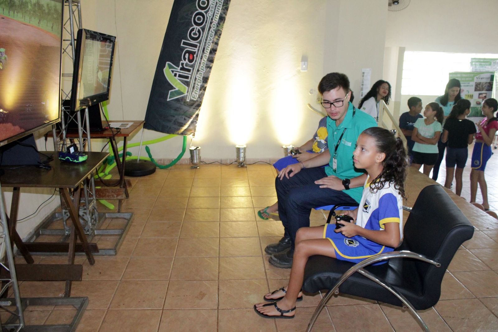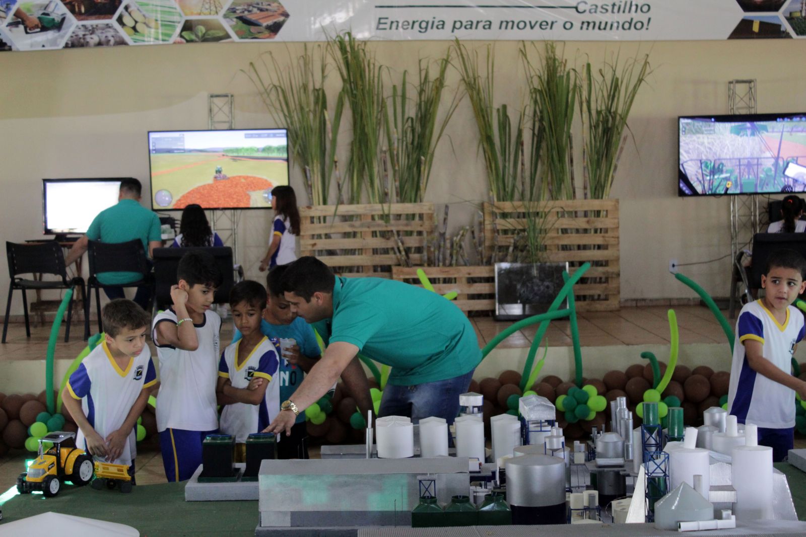 Uma novidade implementada e que se tornou destaque foram os simuladores dos veículos das operações agrícolas, onde as crianças puderam simular estas operações e vivenciar um pouco das várias profissões que hoje são exercidas por pais e parentes na usina.