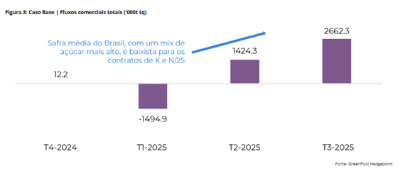 “A demanda por açúcar bruto será decisiva para os preços, e eventuais problemas no desenvolvimento da safra 25/26 do Centro-Sul brasileiro, ou maior urgência na demanda global podem levar a uma tendência altista”, conclui.