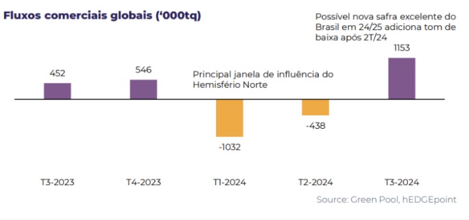Mas lembre-se, o consenso do mercado é que, na ausência de qualquer evento climático intenso, o Brasil está pronto para outro bom ano em 24/25, tornando o 1ºT/24 e o 2ºT/24 a única janela verdadeiramente altista.