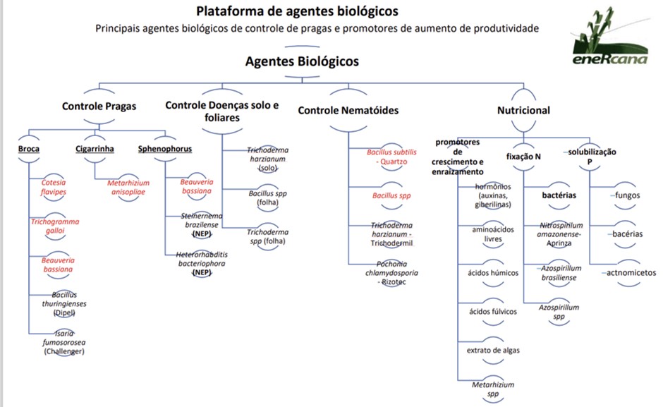 Em cana, o controle biológico de pragas como broca e cigarrinha, um dos mais exitosos além de eficiente e sustentável, colabora sobremaneira nas estratégias de manejo integrado, até mesmo com os químicos, muitas vezes imprescindíveis.