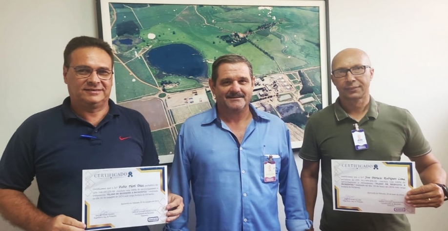 Colaboradores da Alcoolvale passaram recentemente pelo treinamento Plano de Resposta a Incidentes (PRI). O frentista Fábio Fiori Dias e o líder posto de abastecimento José Petrúcio Rodrigues Lima passaram por 16 horas de capacitação teórica e prática, sendo instruídos pelo engenheiro de Segurança do Trabalho Joacyr Pedro Ellero.