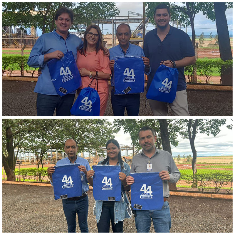 O dia 8 de novembro foi de comemoração na Alcoolvale. Na data, foram celebrados os 44 anos da empresa. Para que o evento fosse marcante, a organização entregou brindes aos colaboradores. Todos ganharam uma sacochila com lembranças. Também houve almoço especial, com cardápio diferenciado preparado pela empresa DGT, responsável pelo serviço.