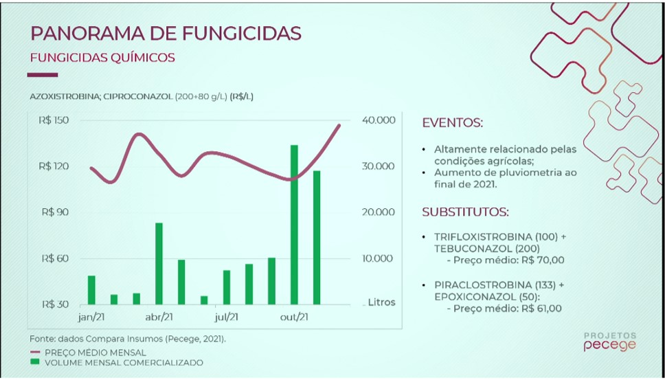 Segundo análise do Pecege, os preços subiram em 2021 e se mantiveram altos nos primeiros meses de 2022, em decorrência da maior incidência de pragas e doenças nos canaviais no período chuvoso. Pragas como a cigarrinha que se prolifera com as chuvas, podendo causar de 25% a 60% de perdas na cana-soca.