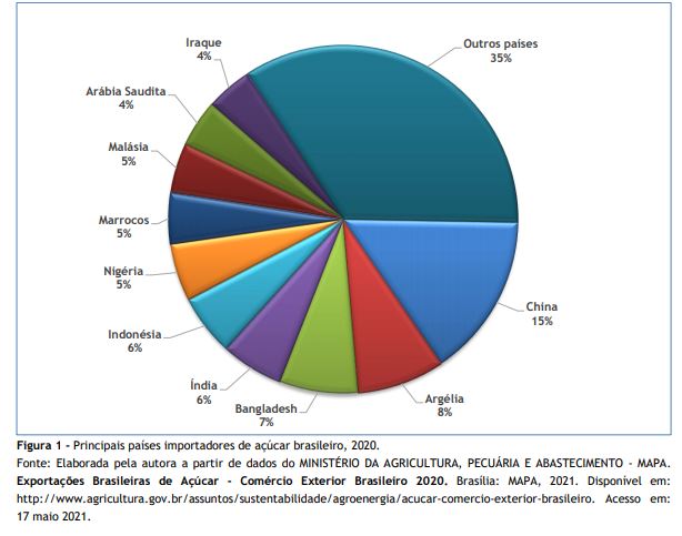 6MINISTÉRIO DA AGRICULTURA, PECUÁRIA E ABASTECIMENTO. Exportações Brasileiras de Açúcar - Comércio Exterior Brasileiro 2020. Brasília: MAPA, 2021. Disponível em: http://www.agricultura.gov.br/assuntos/sustentabilidade/agroenergia/acucar-comercio-exterior-brasileiro. Acesso em: 17 maio 2021.