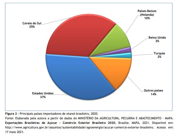11MINISTÉRIO DA AGRICULTURA, PECUÁRIA E ABASTECIMENTO. Exportações Brasileiras de Etanol - Comércio Exterior Brasileiro 2019. Brasília: MAPA, 2020. Disponível em: http://www.agricultura.gov.br/assuntos/sustentabilidade/agroenergia/etanol-comercio-exterior-brasileiro. Acesso em: 17 maio 2021.