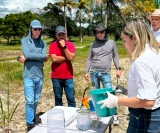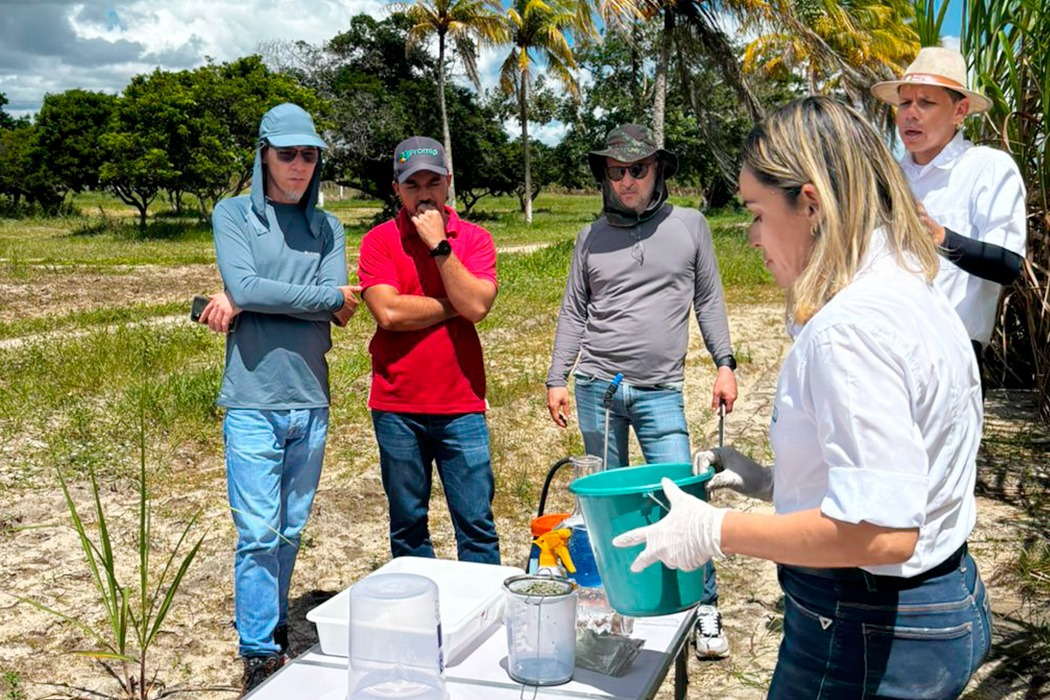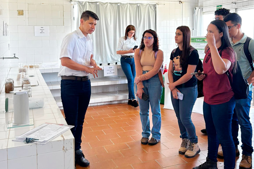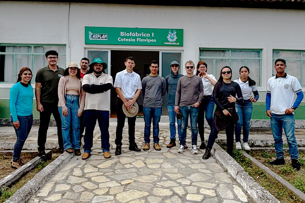 Além de conhecerem a produção das duas biofábricas, os alunos ainda viram na prática a liberação dos insumos na planta e participaram ativamente deste processo. O biólogo e Dr. em Agronomia, Roberto Balbino, coordenador da produção das biofábricas, e as líderes de Produção, Oziene Vicente e Lívia recepcionaram os estudantes e o professor responsável pelo grupo, Dr. Carlos Henrique. “Foi uma aula prática sobre produção e aplicação dos bioinsumos que, com certeza, enriqueceu o conhecimento dos graduandos”, disse Roberto.