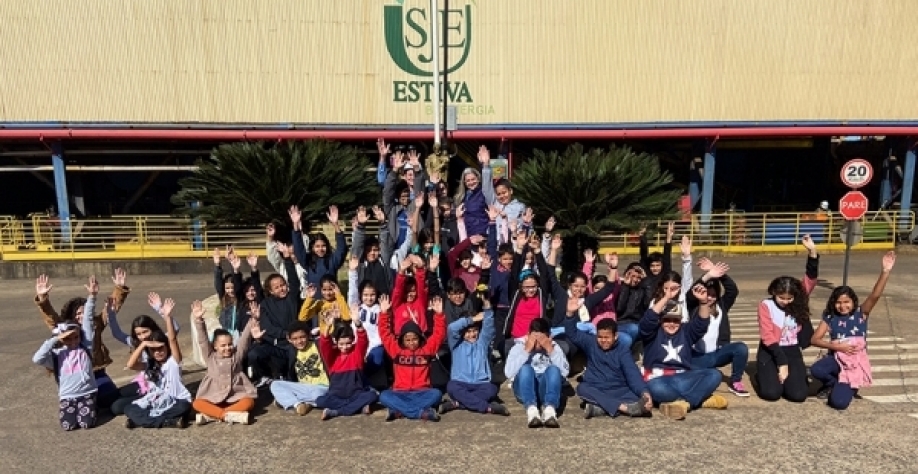 Na Usina Estiva, foram recebidos pelos analistas de Comunicação Guilherme Da Mata e Thomaz Jannuzzi, que apresentaram o vídeo institucional da empresa, e por Ricardo Fernandes, encarregado de Ensaque e Armazenagem, que levou o grupo para conhecer vários setores onde aprenderam mais sobre como a tecnologia tem um papel fundamental nos processos de produção. É uma experiência única mostrar um pouco do que a Usina realiza, como ela transforma a cana em etanol, açúcar e energia. É satisfatório ver o interesse das crianças nestes assuntos”, afirmou.