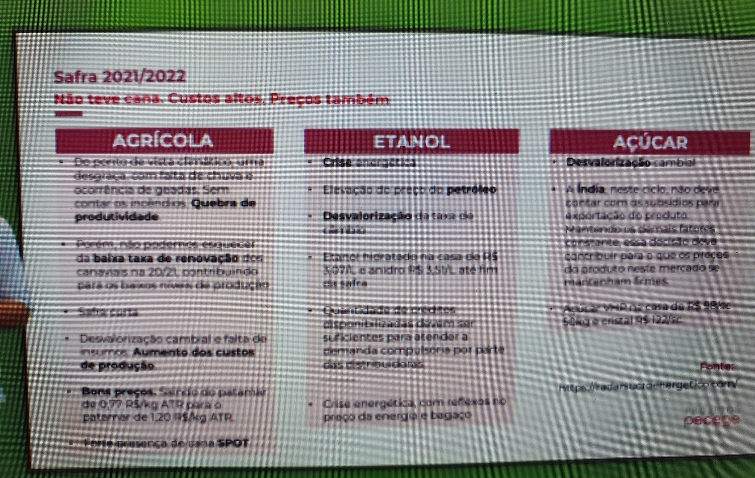 Uma safra que não teve cana, de preços altos e custo também.