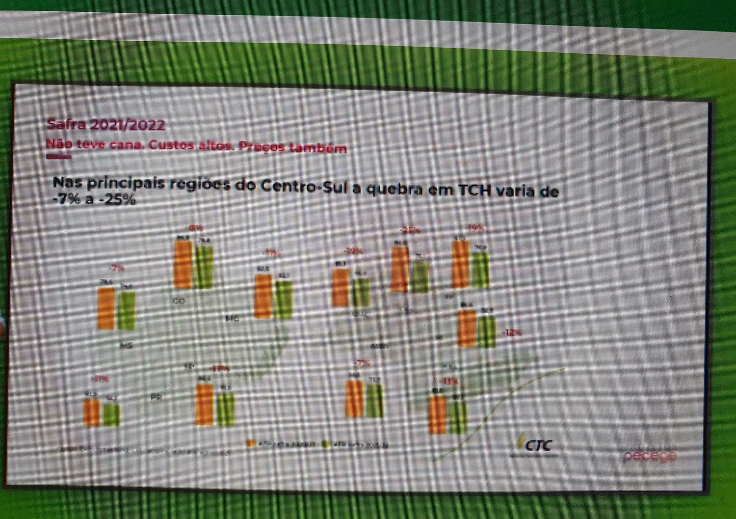 Análise do Pecege sobre a safra canavieira 2021/22 – não teve cana. Preços altos. Custo também