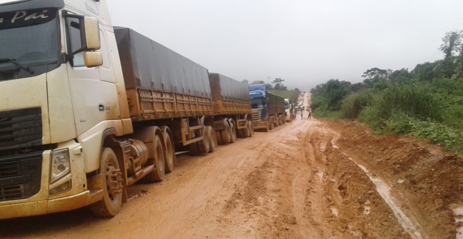 Atoleiros na BR-163 já provocam fila de 40 km de caminhões