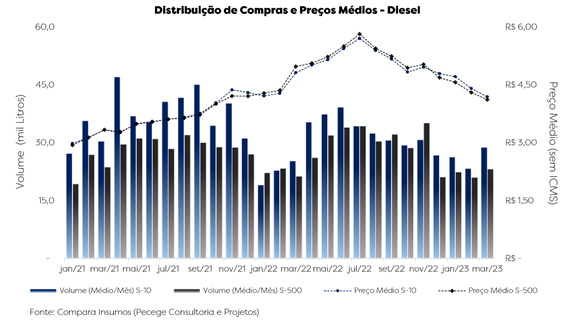 No ano de 2023, por outro lado, os preços mostram-se em tendência de normalização, até o momento, o movimento reflete a queda no consumo mundial, à medida que as economias mundiais ensaiam uma nova desaceleração. No entanto o cenário se torna mais evidente quando se observa a Relação de Troca, que – tanto pelos valores mais baixos do combustível, como pela maior rentabilidade do ATR – atingiu (em março de 2023) o mesmo índice de janeiro de 2021 e ostenta o momento mais favorável à compra de diesel desde fevereiro de 2022.