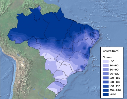 O mês de abril foi marcado pelo contraste no volume de chuvas entre as regiões agrícolas do país. Destacam-se as regiões norte, nordeste e centro-oeste com volume de chuvas de até 240 mm, enquanto as regiões sul e sudeste do país tiveram chuvas abaixo dos 100 mm. No Estado de São Paulo, leste do Paraná, sul dos Estados do Rio Grande do Sul, Mato Grosso e Goiás, o volume de chuva acumulado foi inferior à 30 mm (Mapa 1).