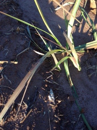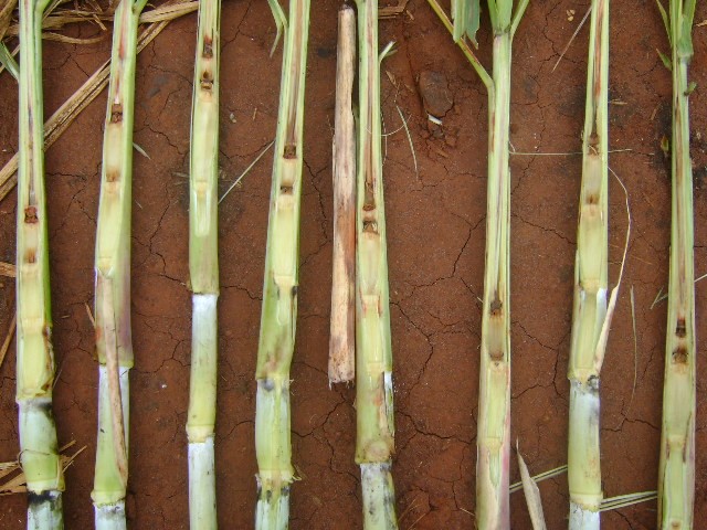 A parte da planta mais suscetível é a superior. Devido à intensidade do frio, os danos caminham para a parte mediana e inferior do colmo, em função de ser a superfície do solo mais quente. O primeiro ponto de injúria situa-se aproximadamente a 2,5 cm da gema apical.