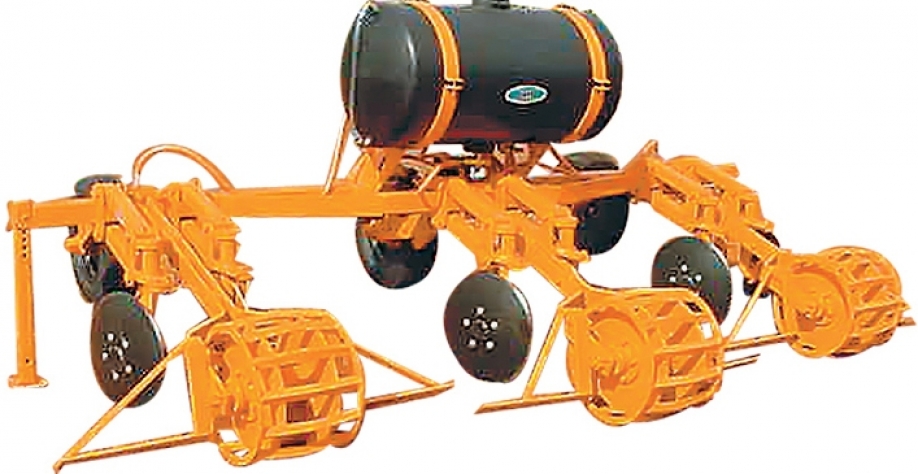Implemento desenvolvido pela DMB para realizar a cobertura dos toletes, juntamente com a aplicação de inseticidas de solo em 3 linhas de plantio da cana-de-açúcar, sem necessidade de recobrição e deixando o terreno nivelado ideal para a colheita mecanizada.