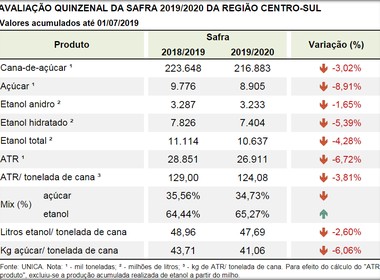 | Dados da UNICA de Junho de 2019 (Foto: Divulgação) |