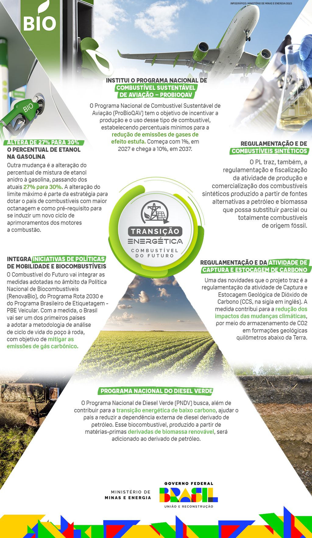 As medidas englobam ainda a alteração da porcentagem do etanol na gasolina (de 27% para 30%), a implementação do Programa Nacional de Combustível Sustentável de Aviação e a regulamentação da atividade de captura e estocagem de carbono, além da criação do Programa Nacional do Diesel Verde.