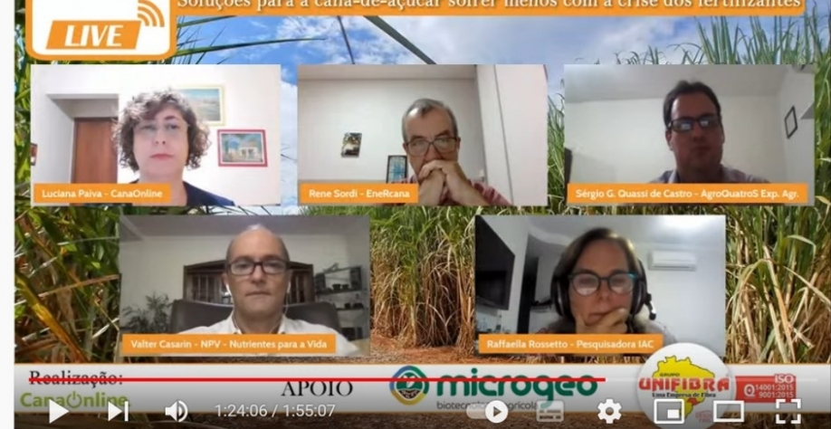 A live: “Soluções para a cana-de-açúcar sofrer menos com a crise dos fertilizantes”, que a CanaOnline realizou nesta quarta-feira 13, reuniu os especialistas:
