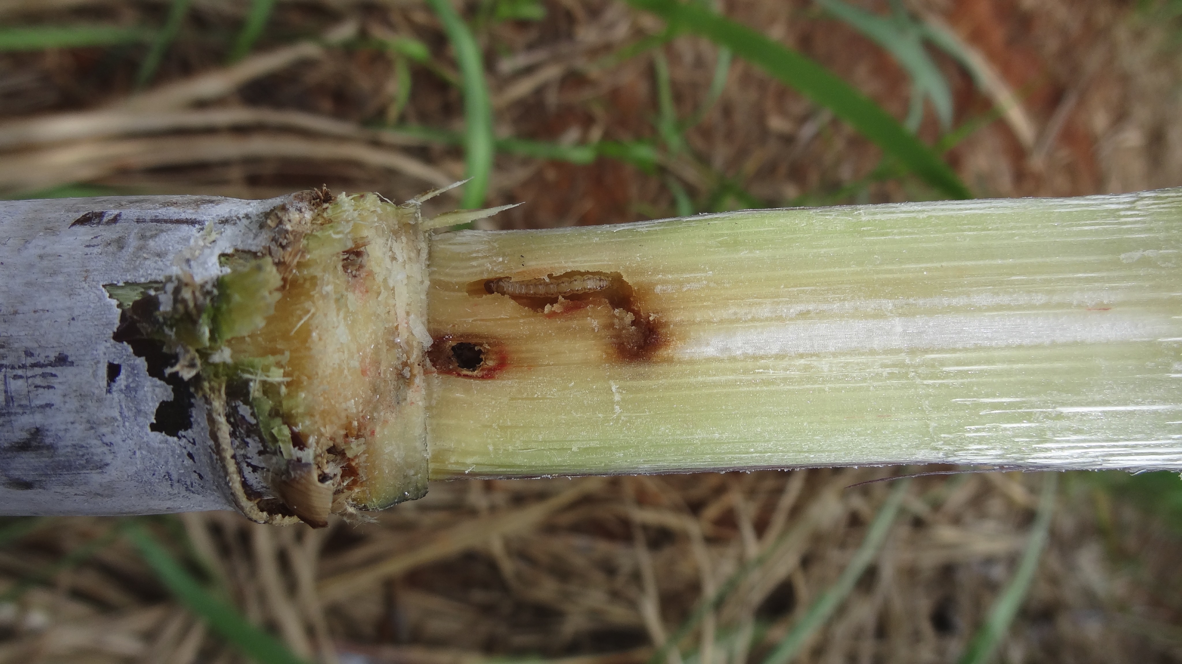 Esse crescente no manejo da broca se deve, principalmente, aos altos danos causados. Quando jovem, a lagarta se alimenta das folhas para depois penetrar pelas partes mais moles do colmo. Nesse momento, ela abre galerias de baixo para cima - longitudinais ou transversais -, que podem ocasionar perda de peso, morte da gema apical, enraizamento aéreo, germinação das gemas laterais e tombamento.