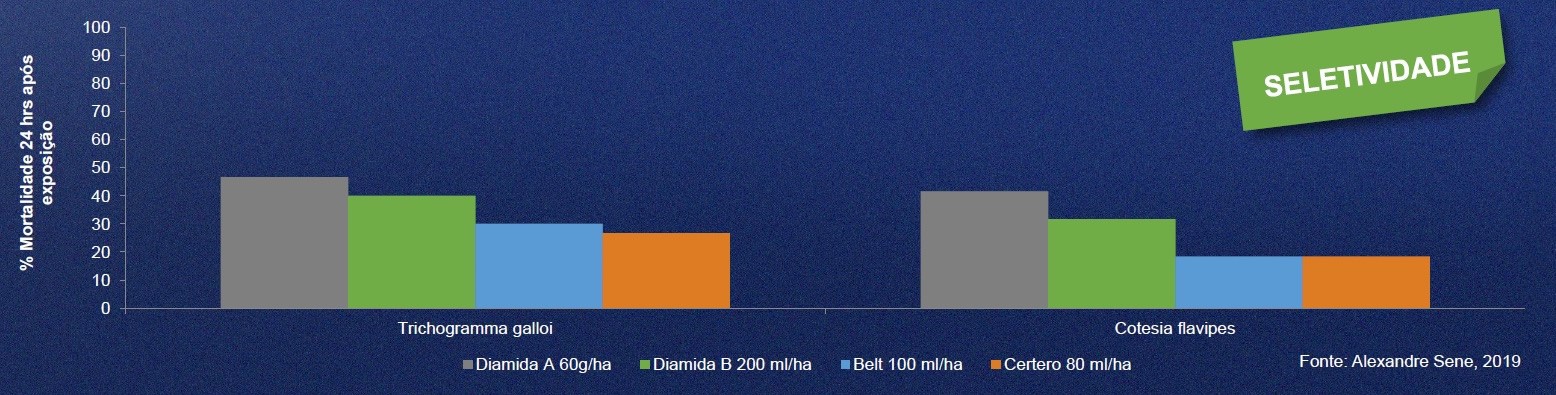 A pesquisadora do IAC, Leila Luci-Dinardo Miranda, realizou um trabalho que buscou avaliar a sustentabilidade da solução. Foram separadas quatro áreas: testemunha; Diamida A 60 g/ha; Diamida B 200 ml/ha; e Belt 100 ml/ha + Certero 80 ml/ha. Após 129 dias, o canavial tratado com o programa de manejo da Bayer resultou em uma intensidade de infestação (% de entrenós brocados) de apenas 1,4%, contra 4% da Diamida A; 4,7% da Diamida B e 5,3% da testemunha.