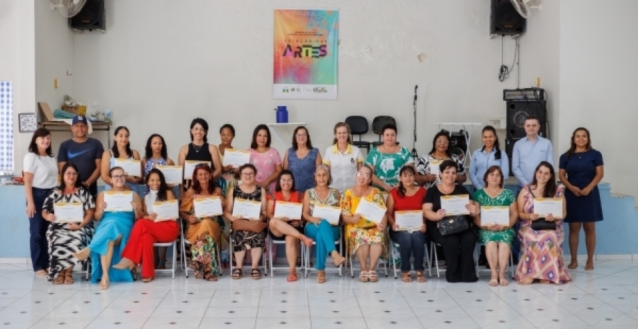 O encerramento do primeiro módulo contou com entrega dos certificados e exposição das ecobags produzidas pelos participantes que, entusiasmados, seguem para novos aprendizados.