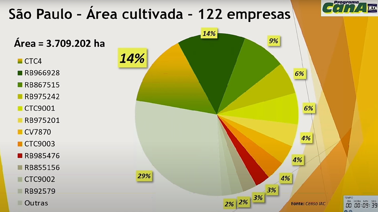De responsabilidade do consultor do Programa Cana IAC, Rubens Leite do Canto Braga Júnior, o censo deste ano levantou dados de 228 empresas, detentoras de uma área de 6,3 milhões de hectares nos estados da Tocantins, Espírito Santo, Goiás, Mato Grosso, Mato Grosso do Sul, Minas Gerais, Paraná, Rio de Janeiro e São Paulo.