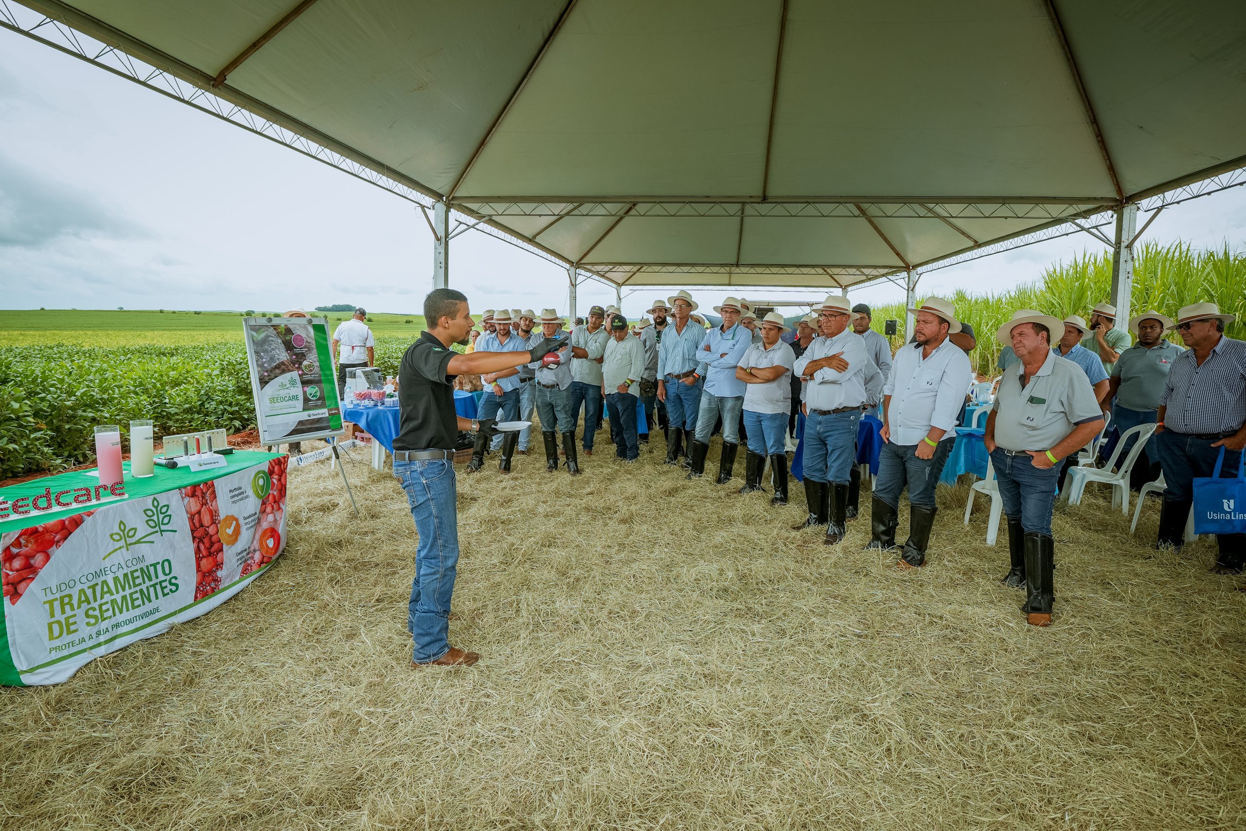 No dia 15 de fevereiro, a Fazenda Quatro Irmãos, localizada na cidade de Cafelândia/SP, foi cenário do evento Dia de Campo Soja da Usina Lins, uma iniciativa inovadora que contou com a participação de importantes marcas de sementes e parceiros de negócios. Nomes como Brasmax, Brevant, Caluba, Cambaí, Corteva, Coopercitrus, Detec AgroConsultoria, Sementes Estrela, ICL, Koppert, Monsoy, Nidera Sementes, Pioneer e Uniggel Sementes uniram forças para proporcionar aos participantes uma experiência enriquecedora e de muito troca de conhecimento.