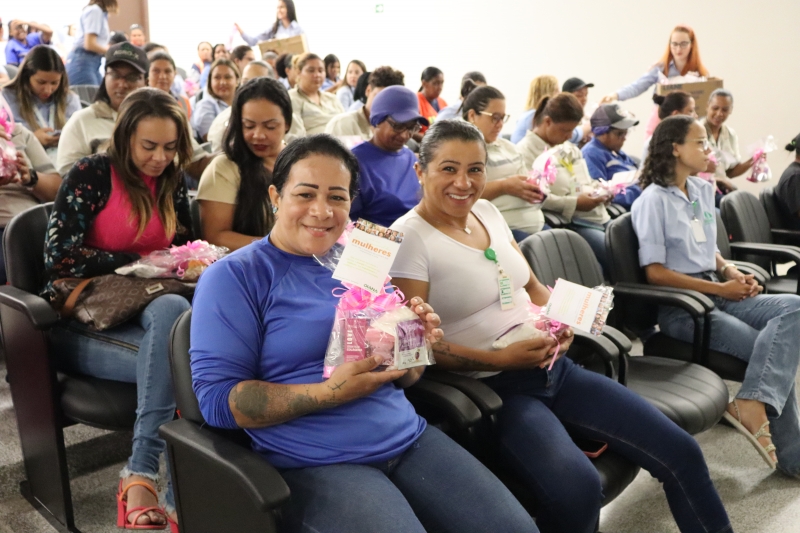 O momento alto do evento foi o sorteio de brindes, proporcionando às colaboradoras a oportunidade de receberem cuidados extras para a pele. Sabonetes faciais, sessões de limpeza de pele e procedimentos de peeling foram alguns dos prêmios sorteados. Além disso, todas as participantes foram presenteadas com um kit skincare personalizado, contendo sabonete facial, esponja de limpeza, sérum facial, argila branca e uma máscara facial, proporcionando uma experiência completa de autocuidado.