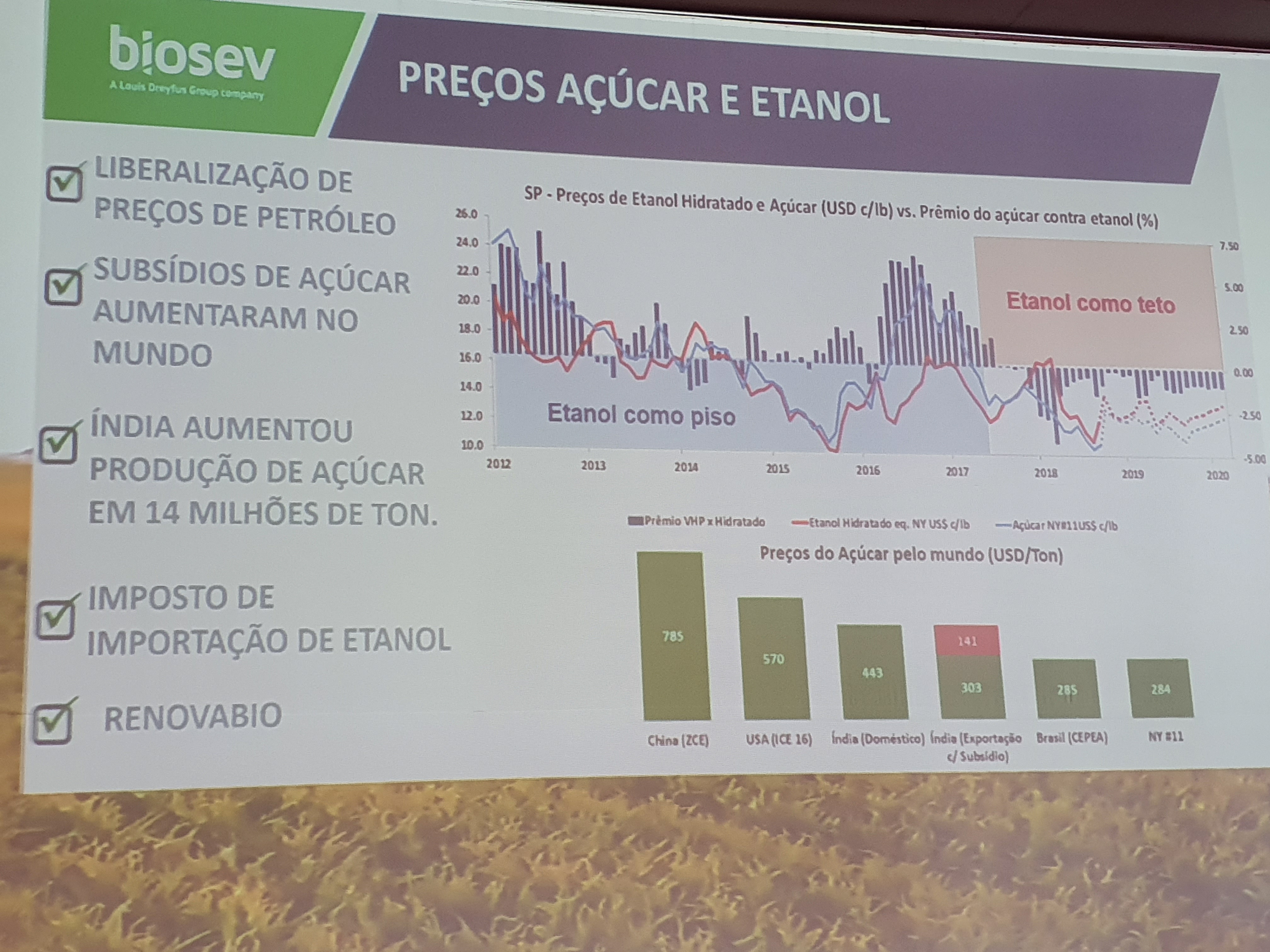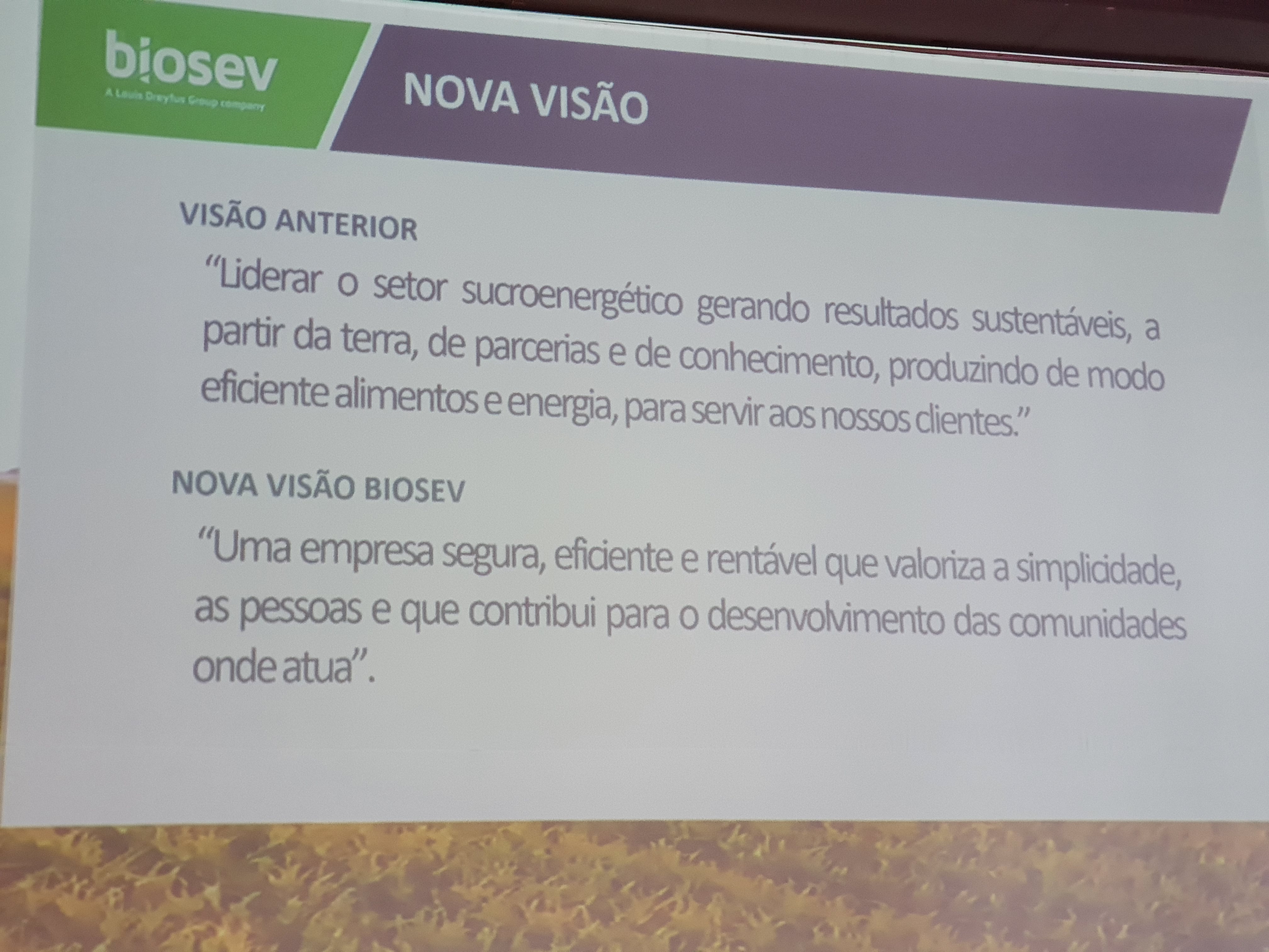 A Biosev está confiante sobre o cenário de 2020, esperando melhores preços de açúcar e etanol, e muito por conta do Programa Nacional de Biocombustíveis, RenovaBio, que entrará em funcionamento a partir de janeiro de 2010, inicialmente, duas de suas oito unidades estão sendo preparadas para atender os critérios do programa.