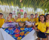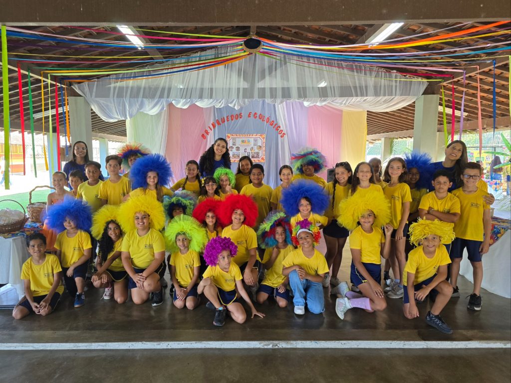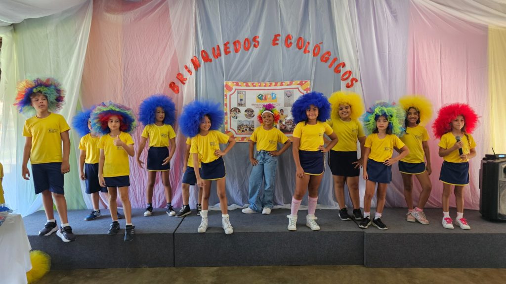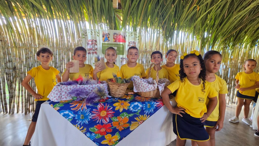 Os alunos do Ensino Fundamental I trouxeram o Nordeste como protagonista no plantio e na colheita de ervas aromáticas, temperos caseiros, banana e coco, destacando os benefícios da culinária saudável e a diversidade de matérias-primas encontradas na região. A reutilização de materiais, como plástico e papel, para a produção de brinquedos também foi evidenciada.