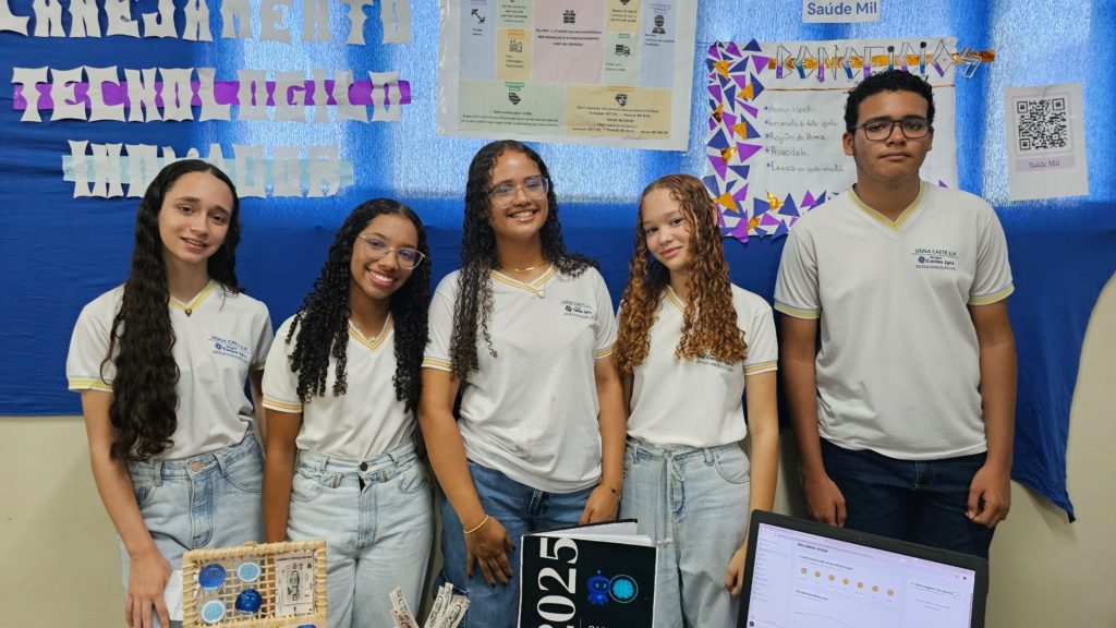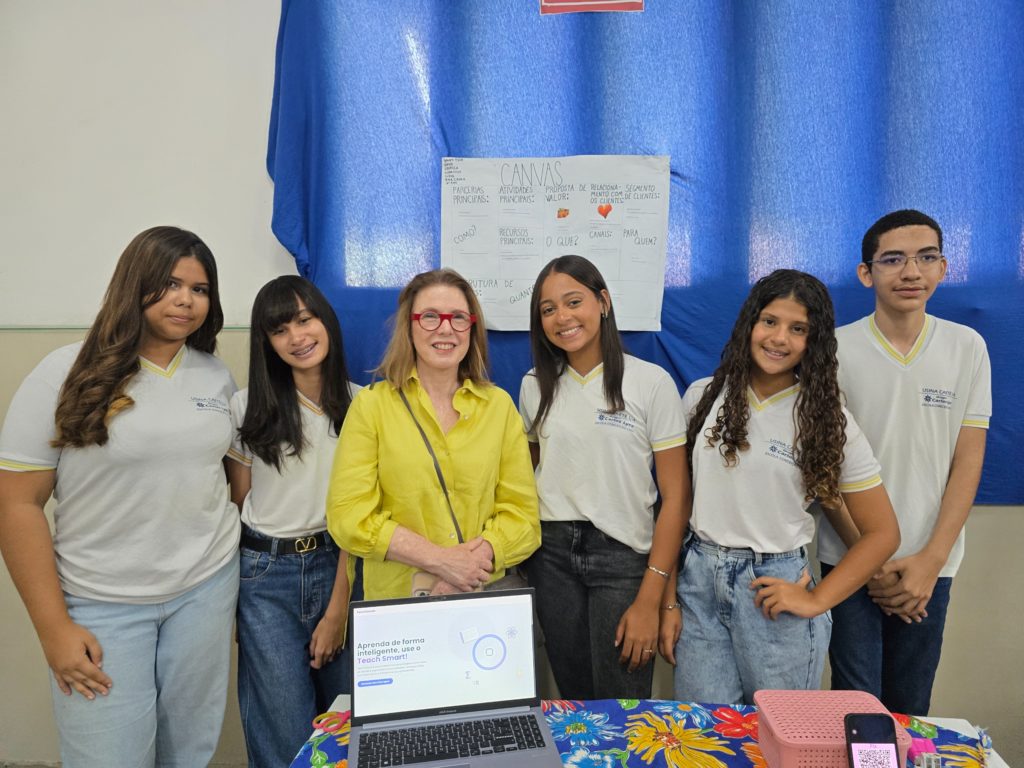 A criatividade e a consciência empreendedora dos alunos foram evidenciadas em projetos como o “Estuda Aí”, idealizado pela aluna Maria Eduarda Silva, que propôs a criação de um aplicativo para auxiliar os estudantes em suas dificuldades de aprendizado. O app utiliza Inteligência Artificial para personalizar e tornar o processo de estudo mais agradável e eficaz. “Percebemos que muitos alunos enfrentavam dificuldades para estudar, então queremos ajudá-los a tornar esse processo mais produtivo e prazeroso”, explicou Maria Eduarda Silva.