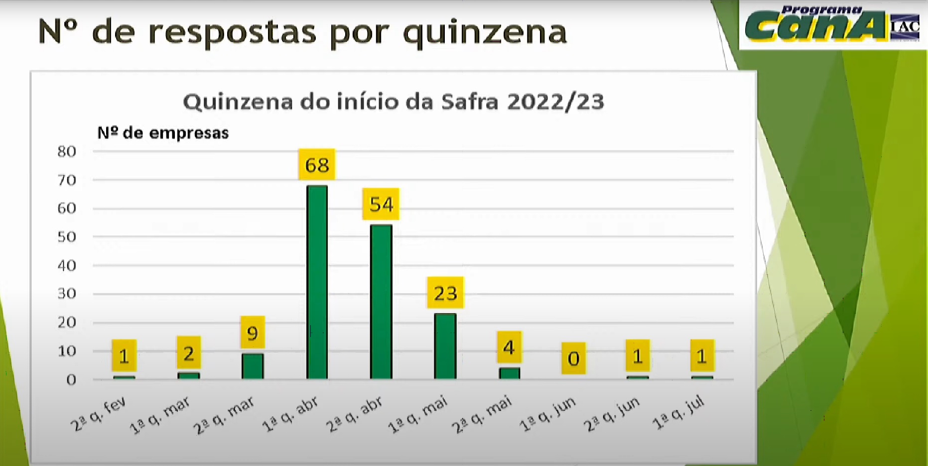 Na última terça-feira (22), o Centro de Cana do Instituto Agronômico (IAC) realizou a 1ª Reunião do Grupo Fitotécnico de Cana de 2022. Na ocasião, o pesquisador do Programa Cana IAC, Rubens Leite do Canto Braga Júnior, apresentou uma pesquisa conduzida junto a 163 unidades produtoras do Centro-Sul do país cujo intuito foi verificar se haverá atraso no início da safra 2022/23 na região.