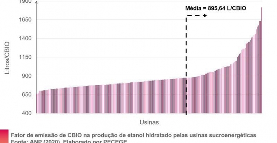 De acordo com o estudo, no âmbito do RenovaBio, para emitir 1 CBio é necessário comercializar 895 litros de etanol. Esse foi o valor médio obtido junto as usinas sucroenergéticas brasileiras, tanto certificadas como em processo de certificação.