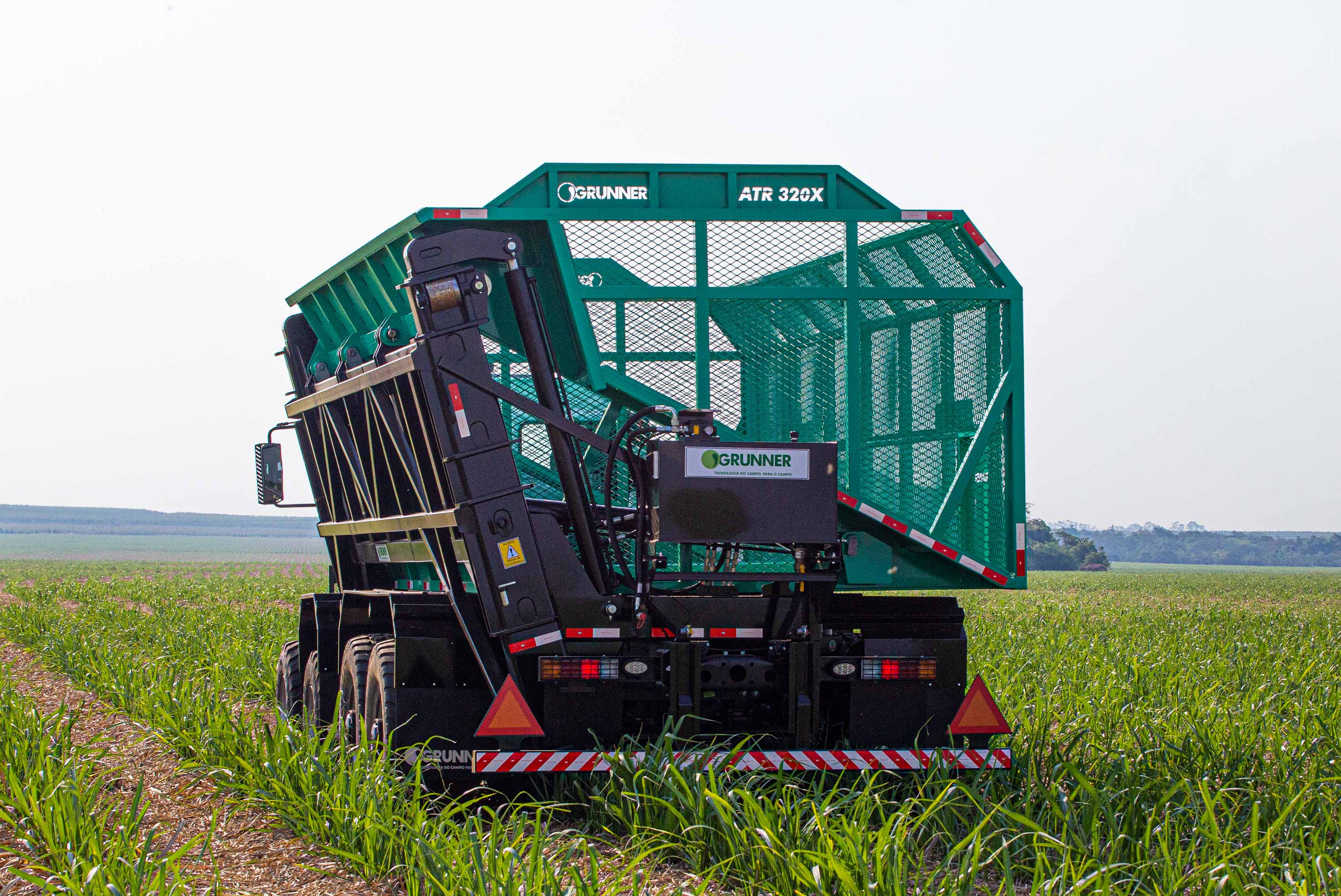 No setor sucroenergético, o Grunner está apto para as operações de transbordo de cana, aplicação de fertilizantes líquidos (vinhaça localizada) e distribuição de insumos sólidos.