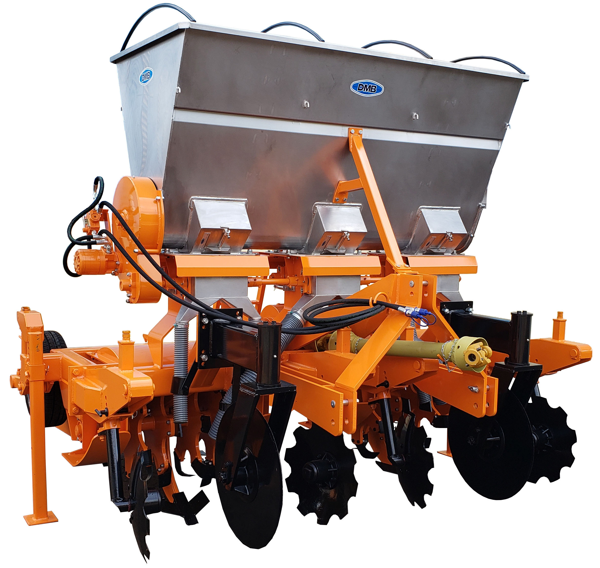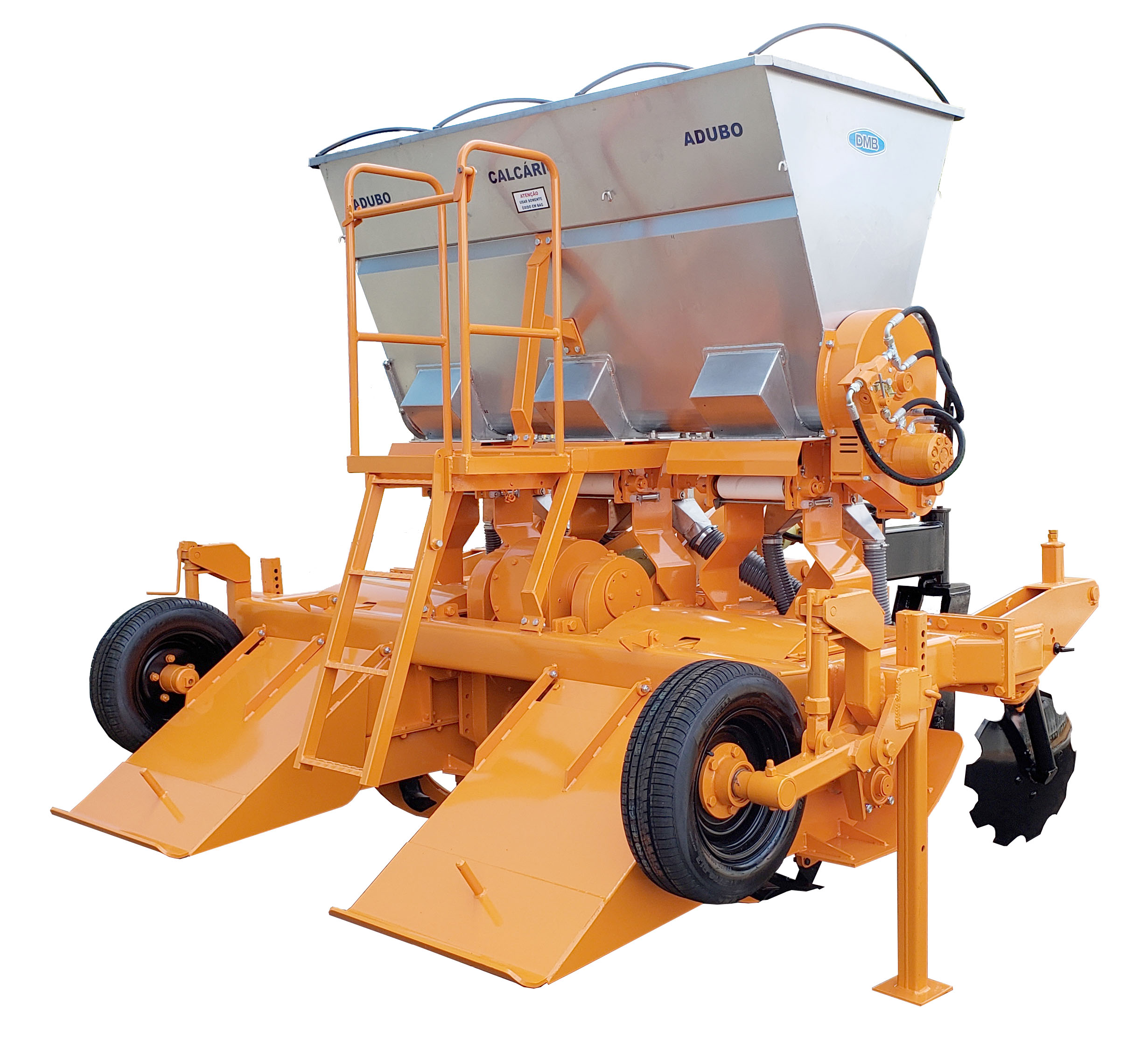 O equipamento possui uma adubadora, que distribui adubo e óxidos, possibilitando que as aplicações desses dois produtos na soqueira sejam realizadas na mesma operação de incorporação da palha, de acordo com a necessidade e opção de usinas e produtores de cana. Há ainda a versão do Incorporador com adubadora de esteiras e a versão sem adubadora, comenta Auro Pardinho.