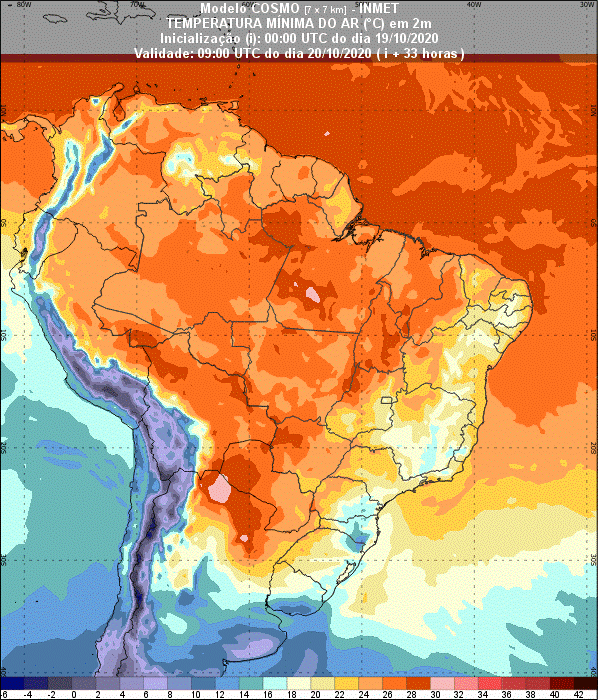 Figura 3: Previsão de temperatura mínima para o dia 20 de outubro às 6 horas