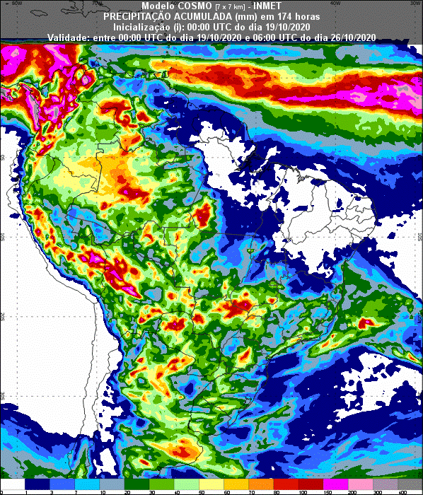 No período de 27 de outubro a 4 de novembro de 2020, "a semana deverá ter chuvas em todo o Brasil, mas em menor volume, na Região Nordeste".