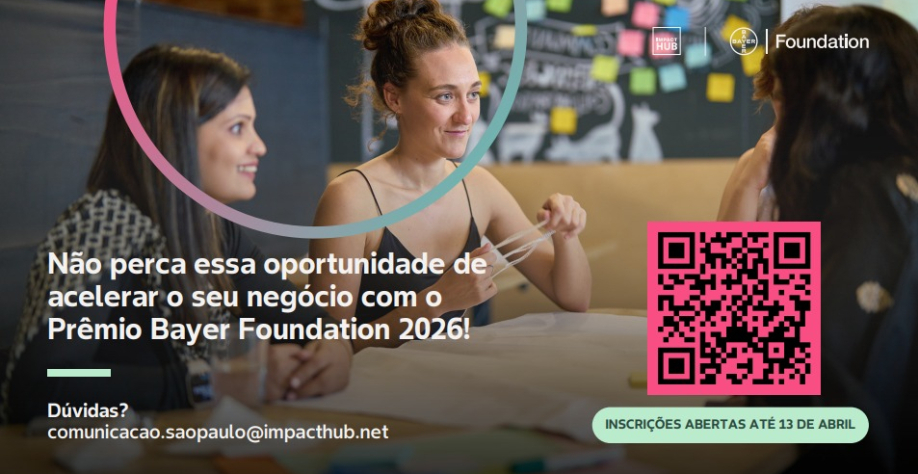 O prazo para inscrição do Prêmio Bayer Foundation para Mulheres Empreendedoras 2026 encerra no próximo dia 13. O Prêmio é um programa de aceleração de 6 meses voltado para mulheres fundadoras que desenvolvem soluções comprovadas nas áreas de saúde e segurança alimentar. As inscrições são gratuitas e podem ser feitas através do site https://bayerfoundation-wea.com/