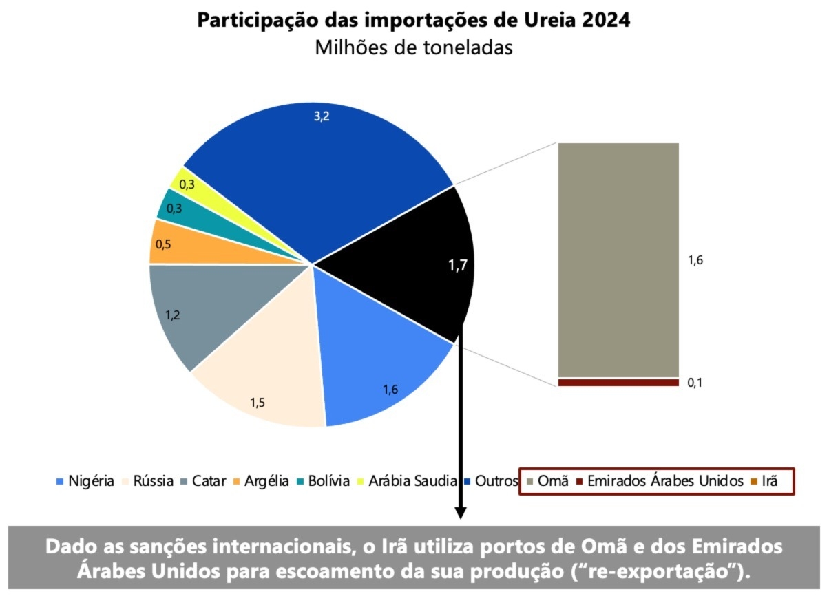 Responsável por cerca de 20% da ureia importada pelo Brasil, o Irã tem uma capacidade anual de produção entre 9 e 10 milhões de toneladas e participa com cerca de 4% da oferta global. Embora modesto em proporção mundial, esse volume é crucial para o Brasil, altamente dependente de fertilizantes nitrogenados importados.