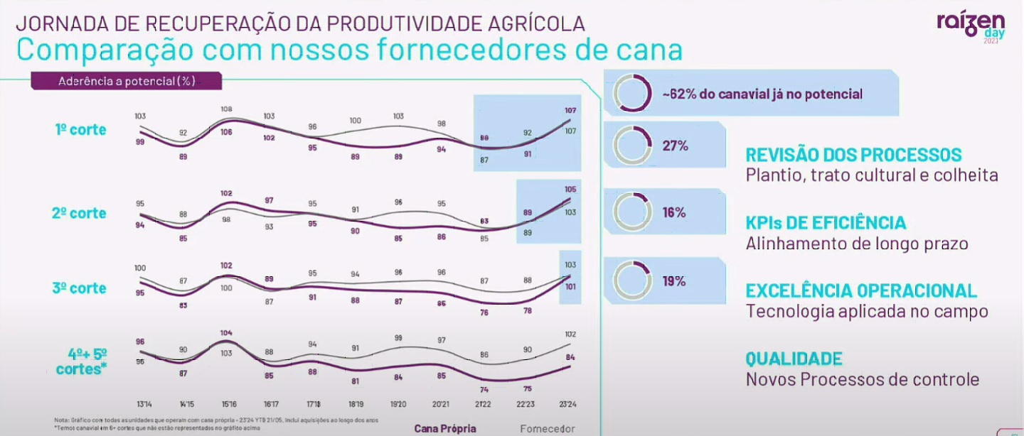 Jornada pela recuperação da produtividade leva Raízen a colocar 62% de seus canaviais no ápice de seu potencial