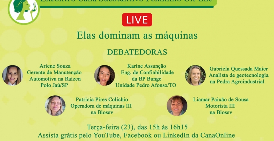 A 8ª live que integra a programação do Encontro Cana Substantivo Feminino On-line tem transmissão simultânea pelo Facebook, Linkedin e YouTube da CanaOnline