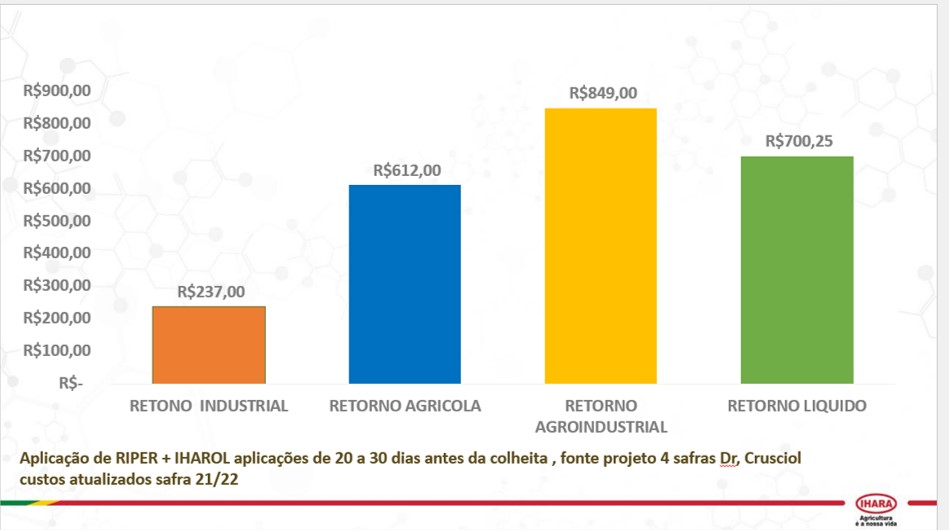 Um ponto altamente favorável é que o setor sucroenergético pode contar com a evolução das pesquisas, que passam a oferecer maturadores que respondem com velocidade de ação rápida, facilitando a tomada de decisão. Esse é o caso do RIPER desenvolvido pela IHARA.