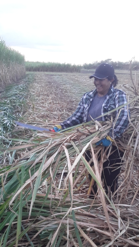 Cleusa, o marido e o genro Pedro Costa, formam uma pequena empresa familiar. “Durante a safra, meu esposo, junto com um grupo cortam a cana e eu e meu genro trabalhamos na administração da empresa e operamos a máquina.”