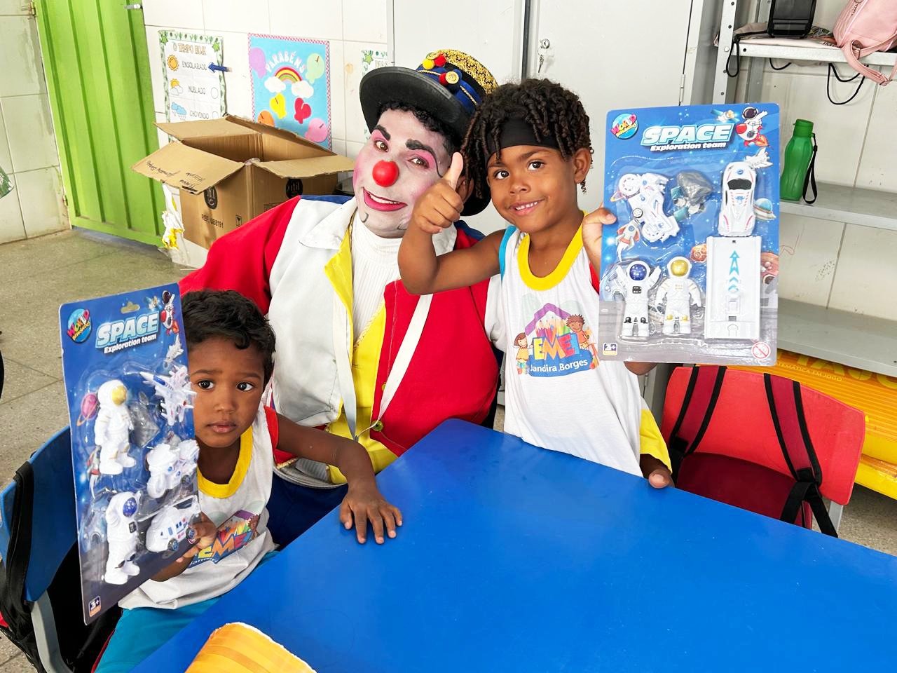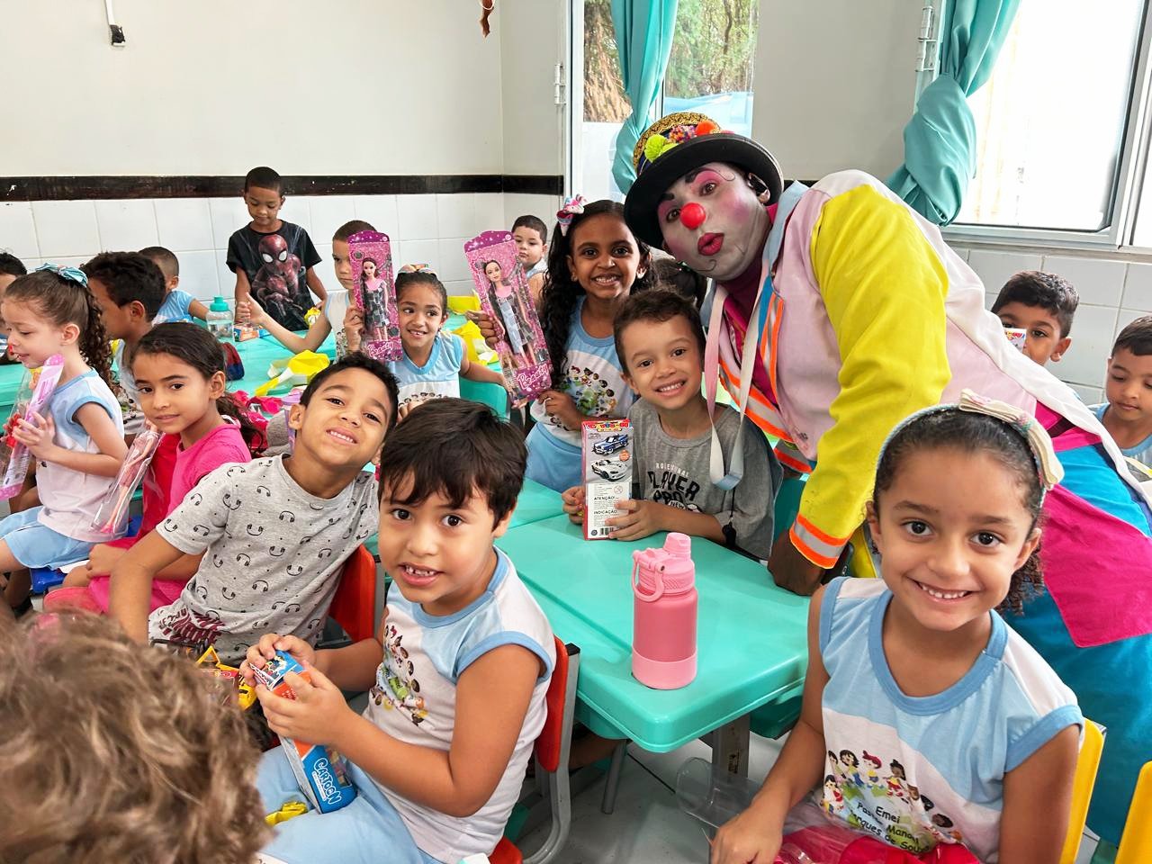Coordenado pela equipe de Gente e Gestão da empresa sucroenergética e animado pelos palhaços Chapeleta e Paçoquinha, o projeto mudou a rotina das 204 crianças da escola com uma série de brincadeiras e a entrega dos presentes de Natal. Segundo a coordenadora da EMEI, Iracilda Marins, esta foi a primeira vez que a escola recebeu o projeto. "Ficamos todos muito felizes, alunos e professores, com as dinâmicas de interação, brincadeiras e a distribuição de presentes que encheu de alegria o semblante das nossas crianças. Esperamos renovar essa parceria todo ano", ressaltou. Ainda na segunda-feira (8), o projeto solidário alegrou os 200 alunos do EMEI Jandira Borges Cunha, no Tabuleiro, e os 244 alunos do EMEI Gentil Damásio do Nascimento, no Alto da Aliança.