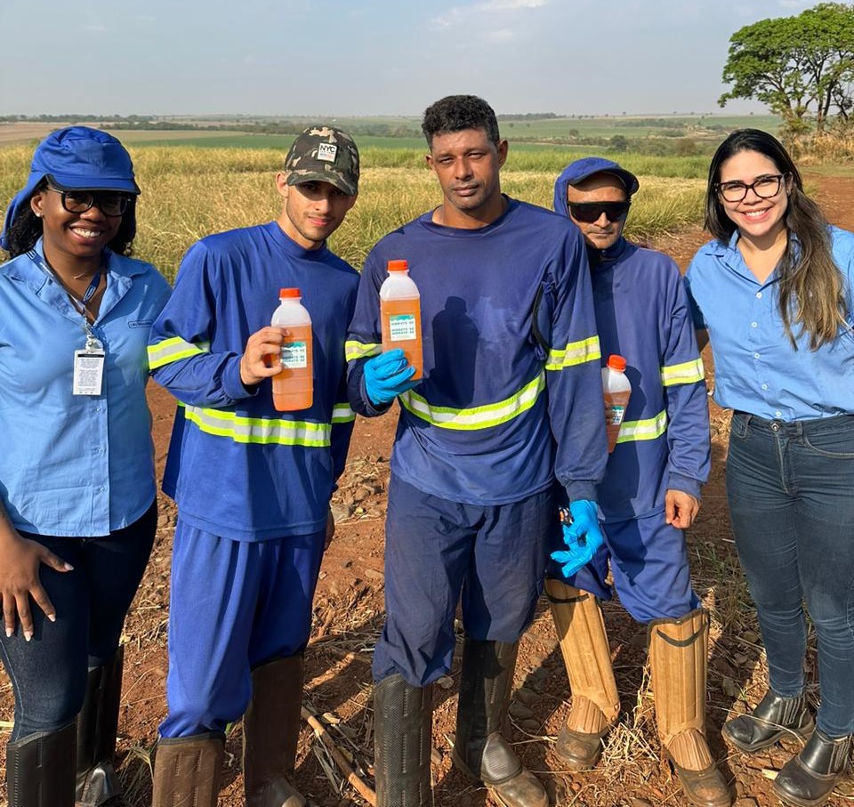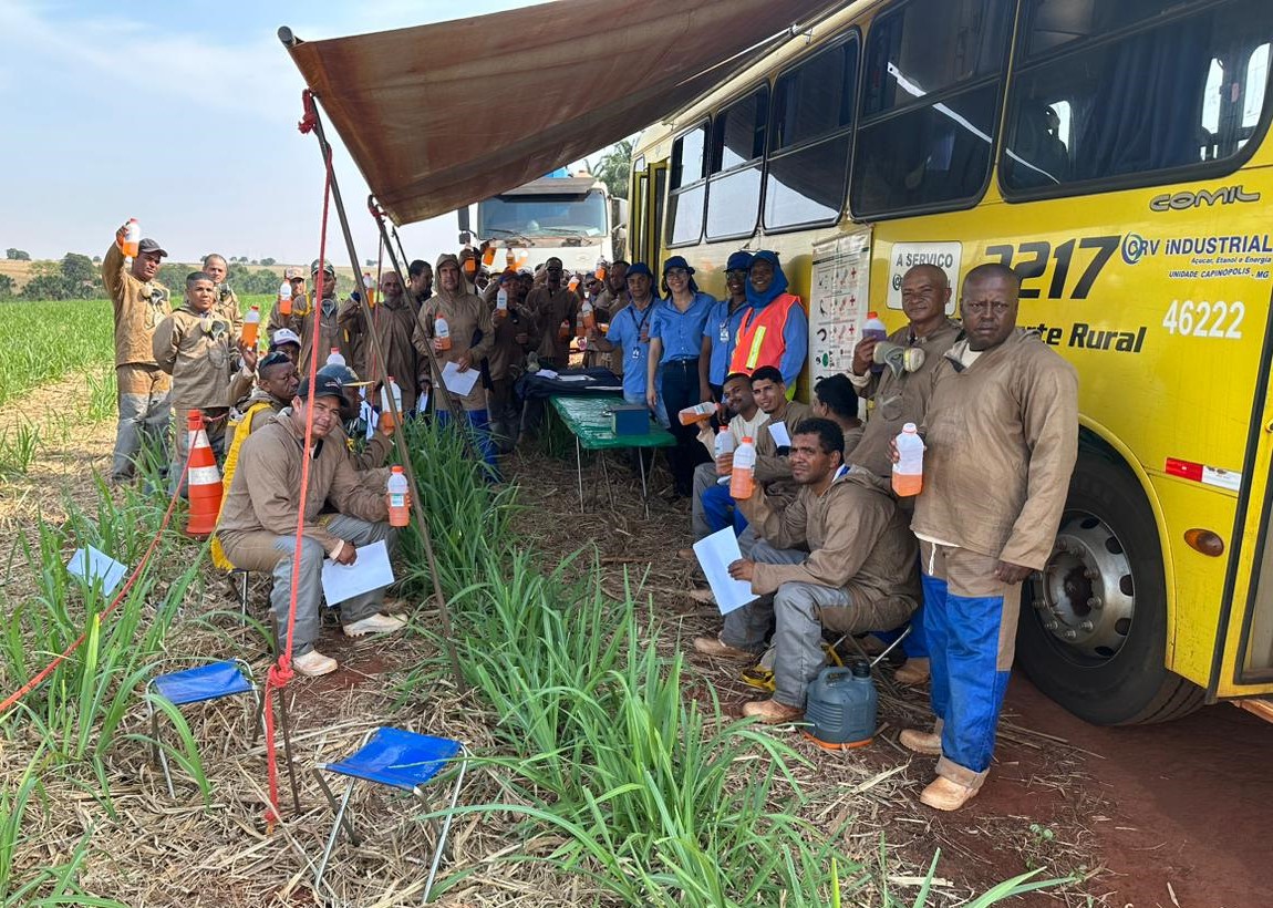 Nos dias de calor intenso foram entregues aos profissionais do campo e da indústria um soro hidratante de um litro, que é composto com cloreto de sódio, cloreto de potássio e glicose. Receberam o conteúdo os colaboradores de diversos departamentos, como da irrigação, operações manuais, motoristas e operadores e indústria.